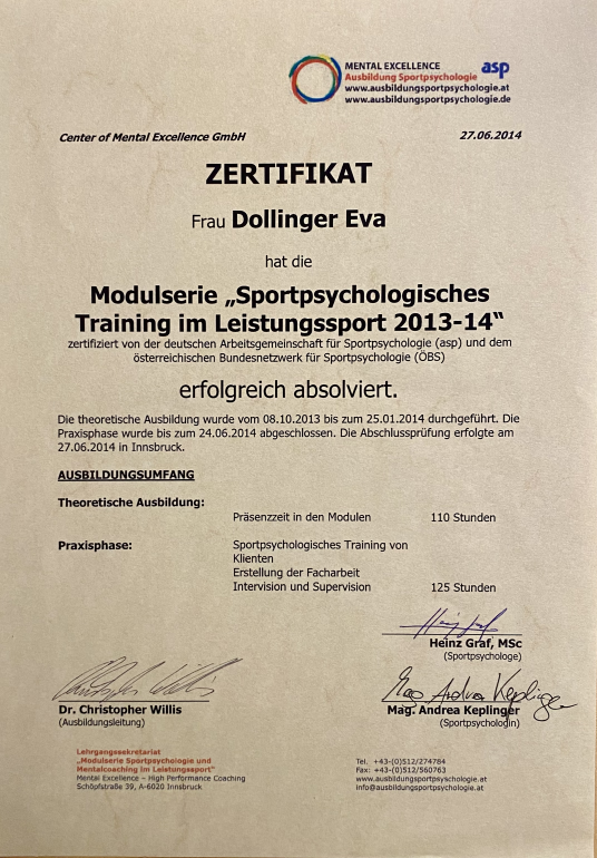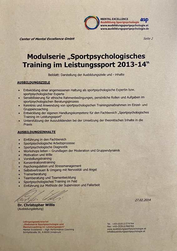 Ausbildung "Sportpsychologisches Training im Leistungssport" - Gewerbe Psychologische Beratung
