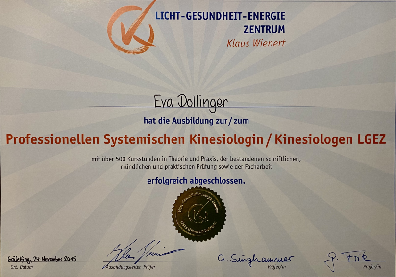 Ausbildung zur Professionellen Systemischen Kinesiologin nach LGEZ - 2013-2014: